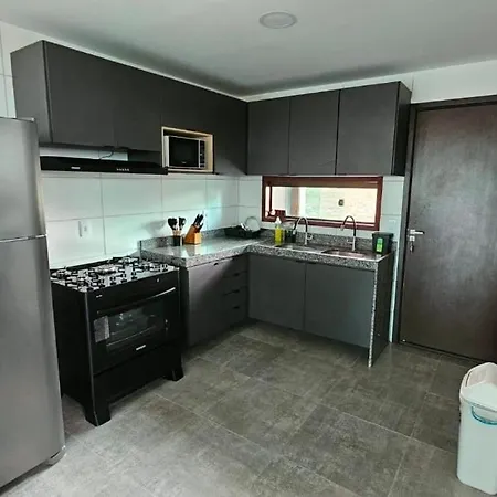 A Gravatá városi nyaraló rendelkezik egy sütővel felszerelt felszerelt konyhával a főzéshez.